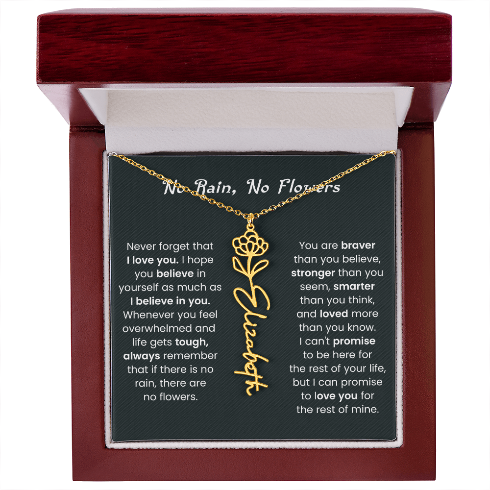 Need a gift that's as unique as she is? Then look no further than our Flower Name Necklace! With a customizable birth flower design, this necklace is a meaningful addition to any jewelry collection. Whether you're dressing up for a special occasion or simply want to add some flair to your everyday look, this necklace is perfect for your special someone. Handcrafted from high-quality materials, it is both stylish and durable. So why wait? Personalize your own floral name necklace today!