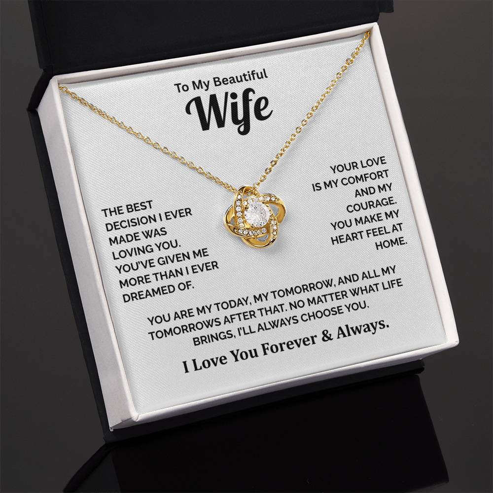Imagine her reaction receiving this beautiful Love Knot Necklace. Representing an unbreakable bond between two souls, this piece features a beautiful pendant embellished with premium cubic zirconia crystals. Surprise your loved one with this gorgeous gift today!